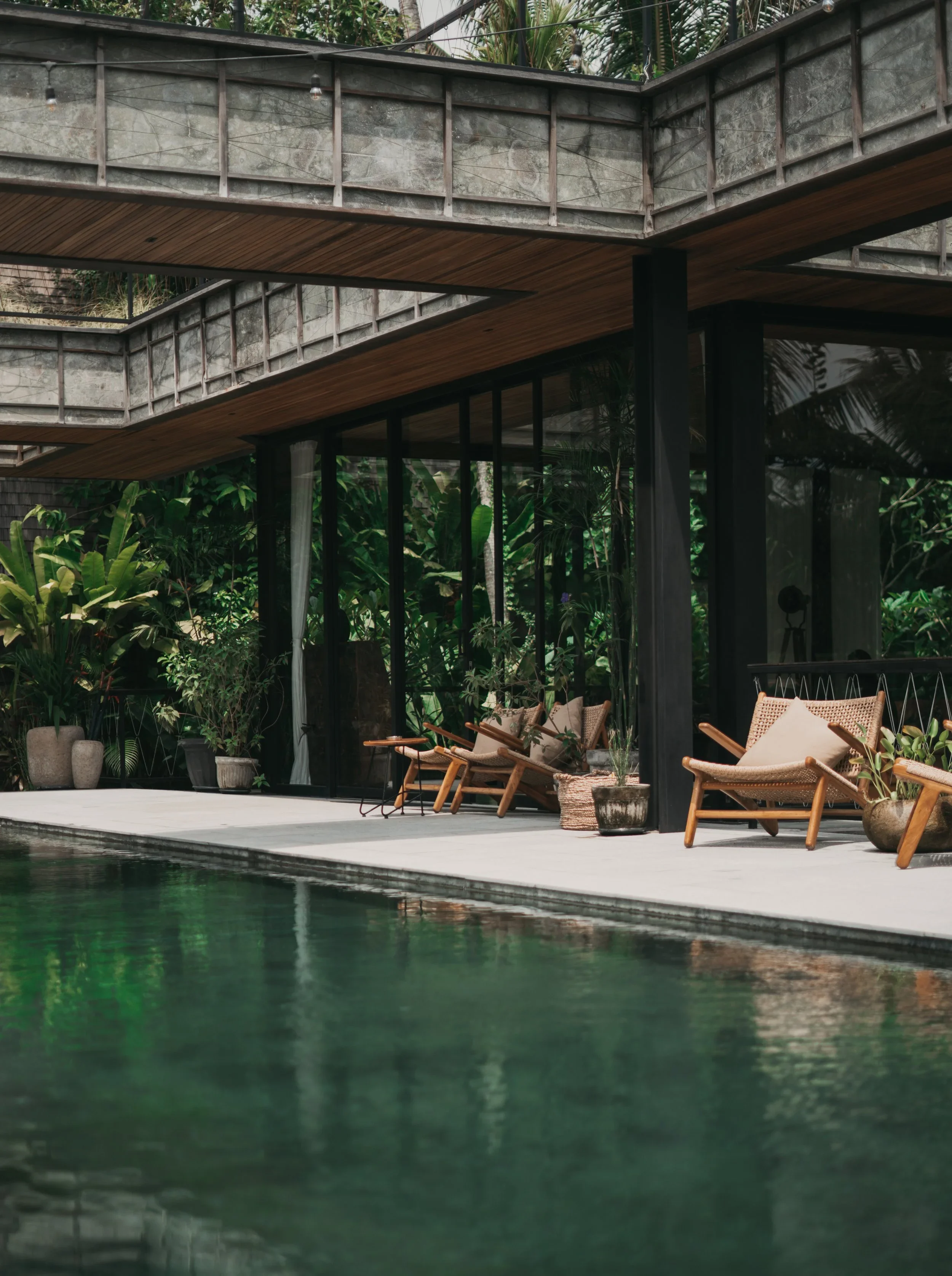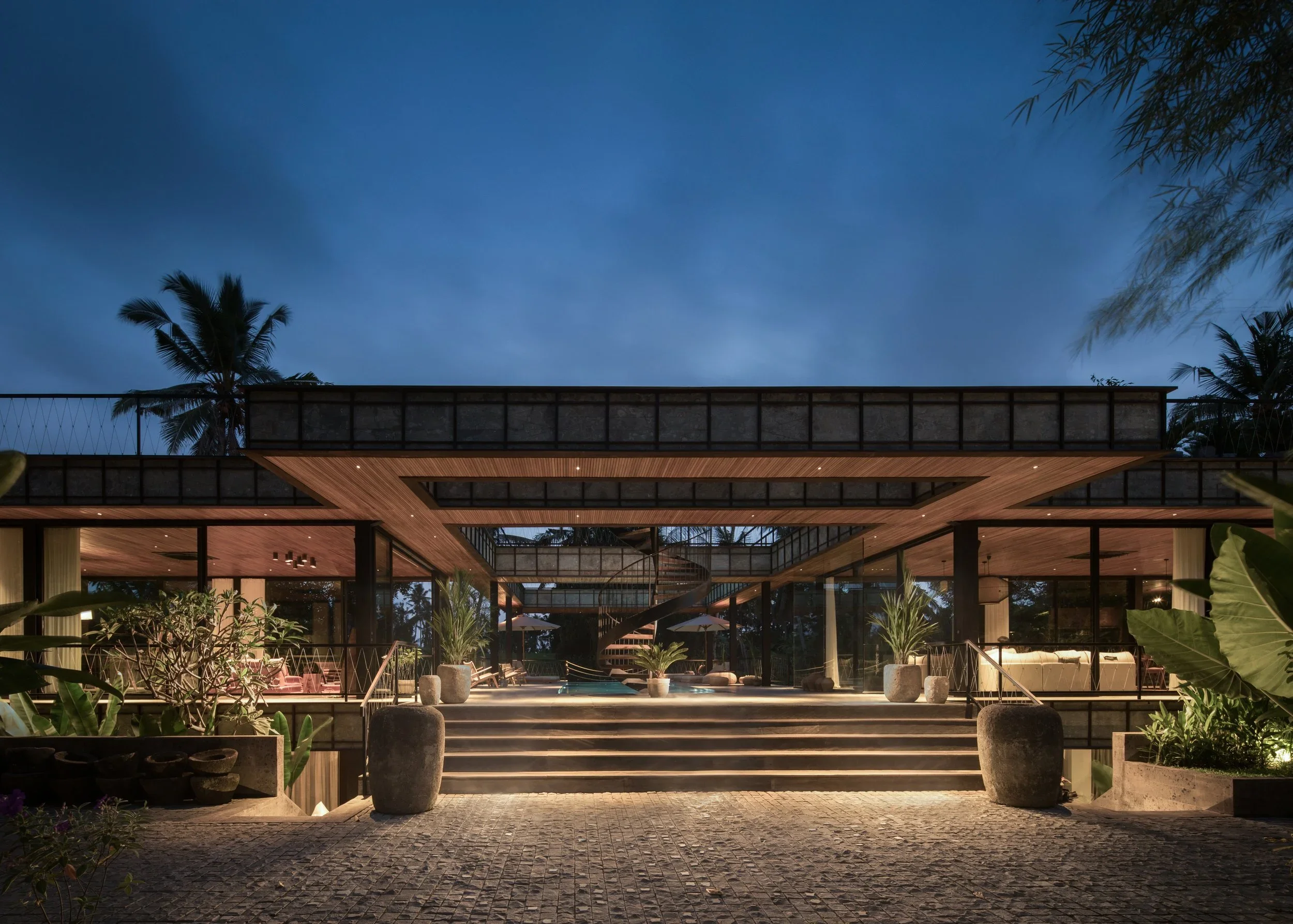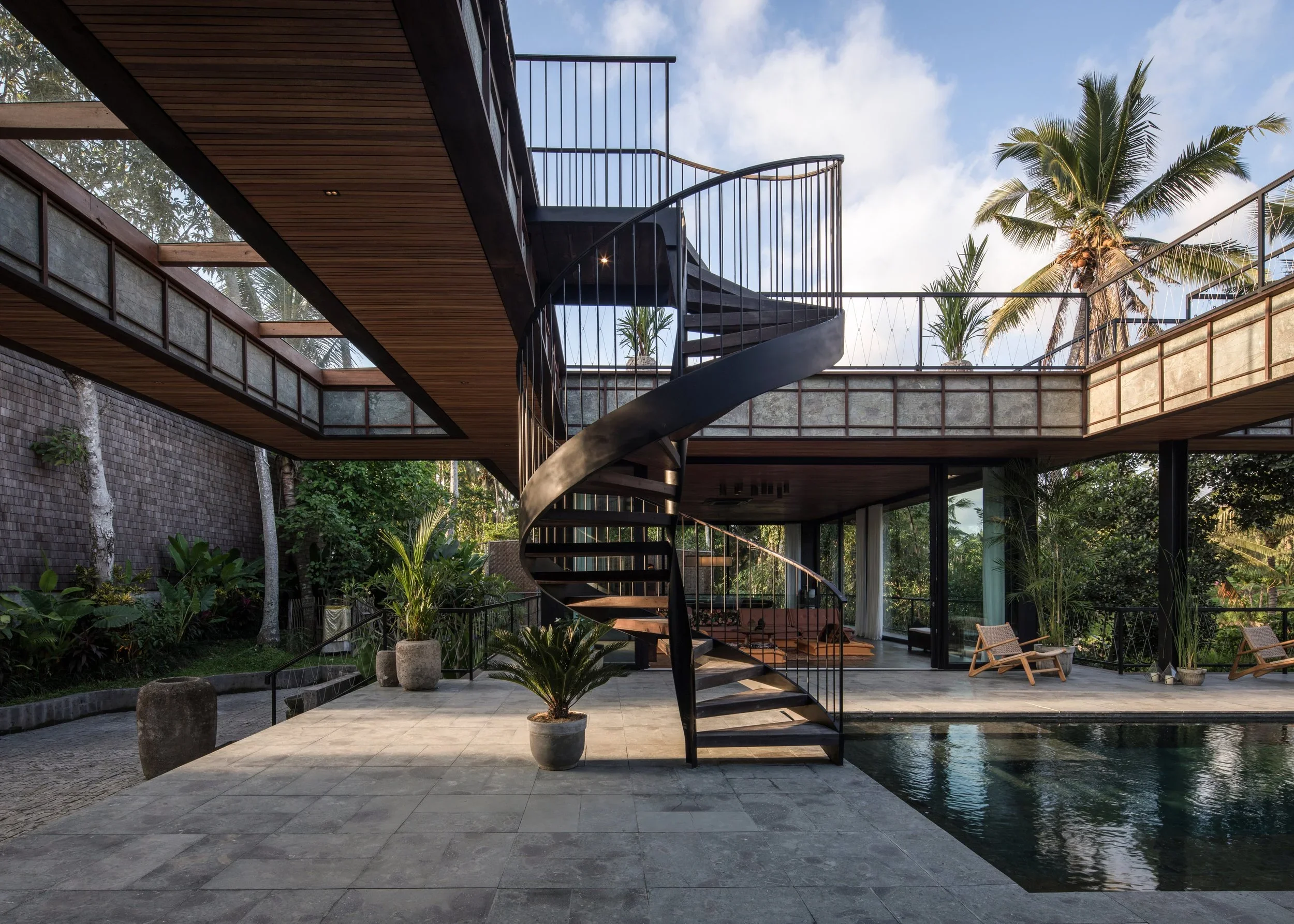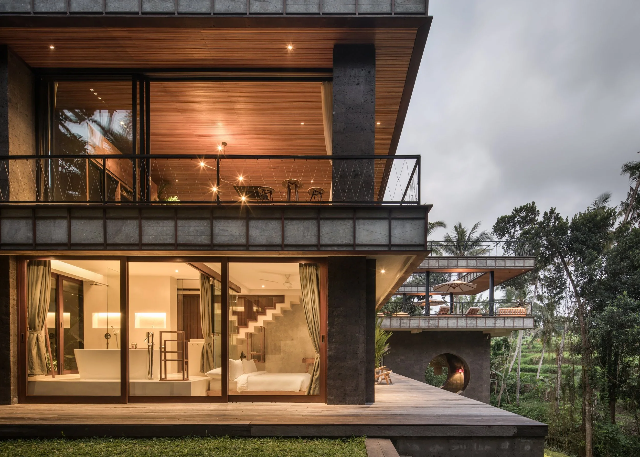 Nestled amidst a private jungle, Bond House offers a serene escape with stunning views overlooking a river and Bali's renowned rice fields. This luxurious 5-bedroom villa accommodates up to 10 guests and boasts a 16-meter overhanging infinity pool, a one-of-a-kind spa, two fully air-conditioned living rooms, and various outdoor spaces perfect for yoga, meditation, events, and celebrations. Immerse yourself in nature's embrace and indulge in ultimate relaxation and tranquility at Bond House.