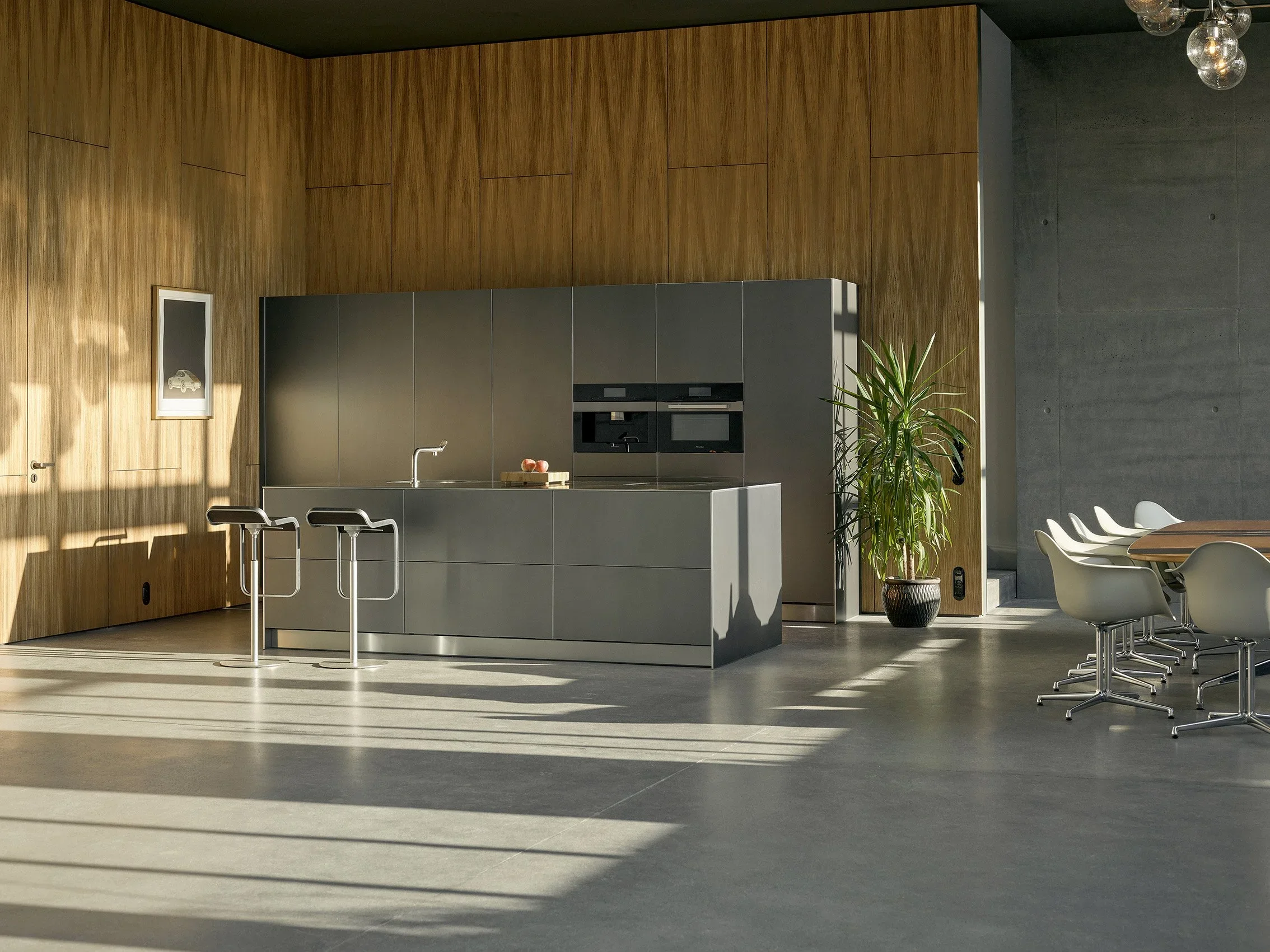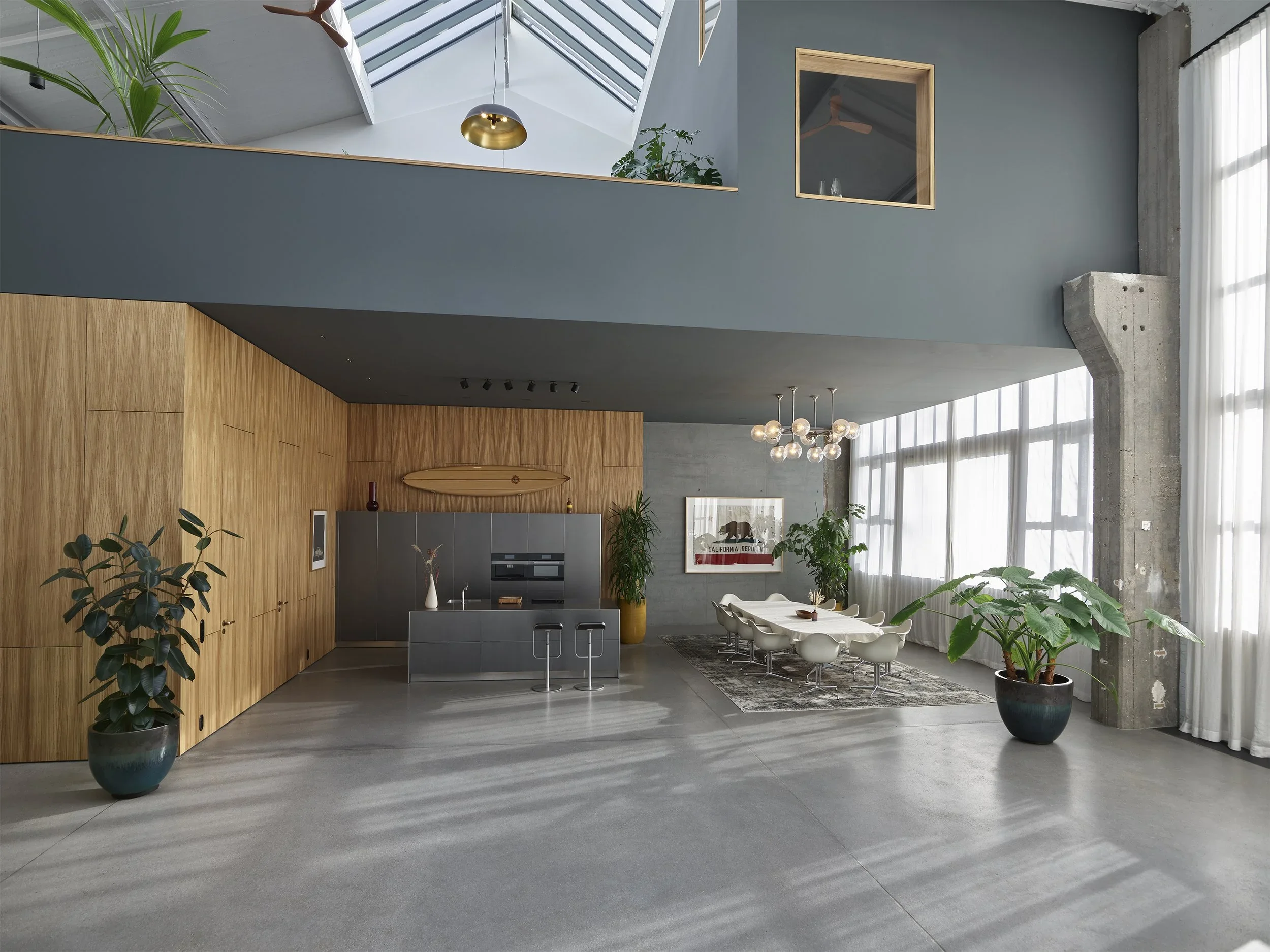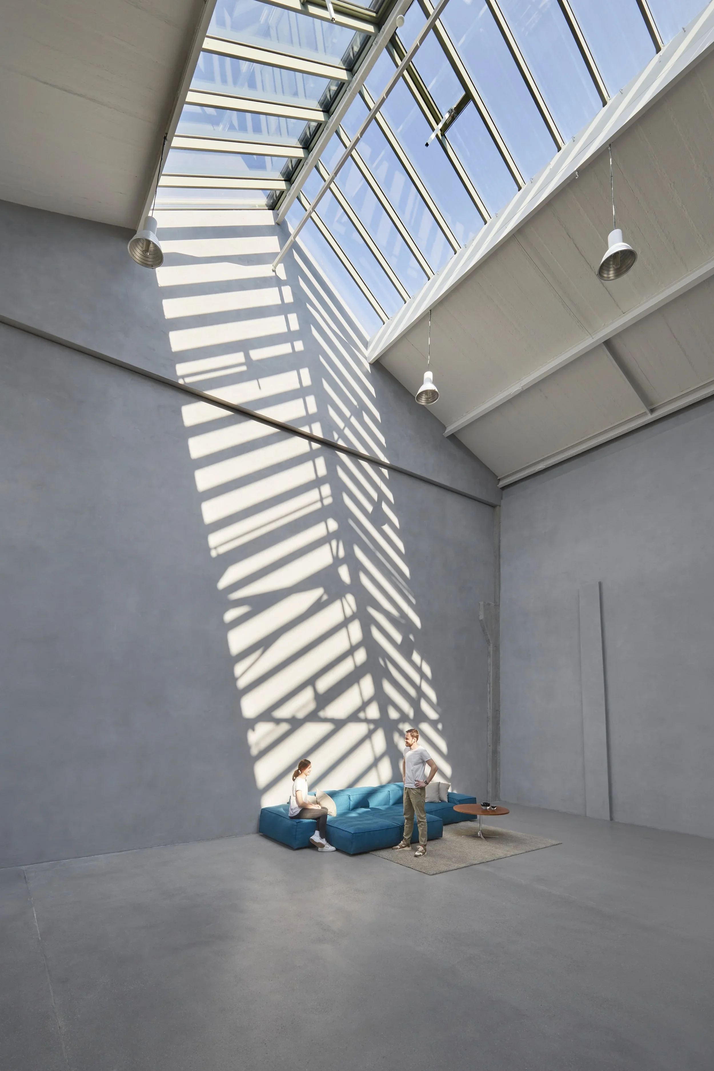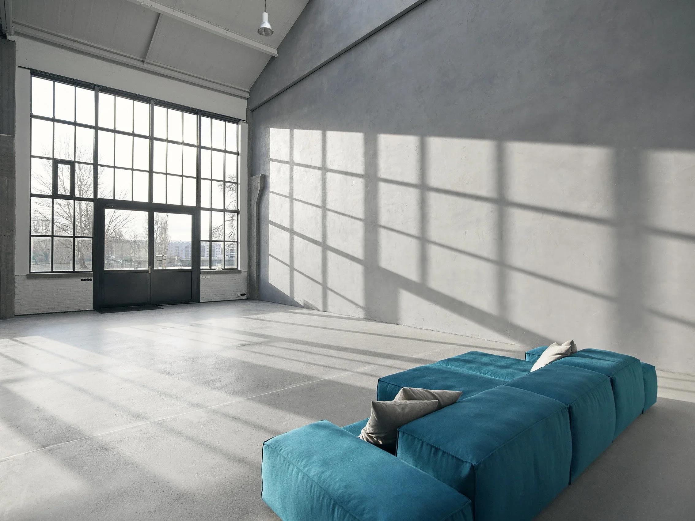 This unique place impresses with timeless minimalism, light-flooded rooms, warm colour nuances and soft surfaces that provide a lot of sensuality and give the studio its very special character. It has a high-quality and stylish ambience, with exclusive materials and urban design. The Studio spans 150 square meters and captivates with its 12-meter-high skylights and distinctive charm. Its proximity to the water allows for easy access via the waterway, adding to its allure.